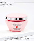 Masque fortifiant anti-casse pour cheveux affaiblis. Nourrit profondément, démêle et renforce les cheveux pour réduire la chute causée par la casse.