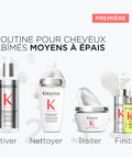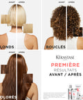Pour optimiser les résultats, superposer différents soins. Appliquer d’abord le soin Concentré décalcifiant ultra-réparateur de Kérastase, pour une puissante dose d’actifs réparateurs. Puis, sur les cheveux non rincés, appliquer le shampooing Bain décalcifiant réparateur de Kérastase pour obtenir des cheveux forts, brillants et lisses. Appliquer le masque deux fois par semaine pour magnifier la chevelure. Les soins Première de Kérastase peuvent être utilisés ensemble pour optimiser les effets restaurateur et décalcifiant.