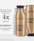 Notre revitalisant le plus luxueux et onctueux, qui fortifie, répare et apporte de la brillance aux cheveux fatigués.