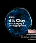 Concentré à 3 % d’AHA, un acide hydrosoluble. Il aide à purifier la surface du cuir chevelu pour favoriser la régénération cellulaire. Dès la première utilisation, réduction de 78 % du sébum du cuir chevelu*, *test instrumental, shampooing + argile.