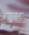 Appliquez uniformément sur cheveux secs et coiffés, en touche finale.