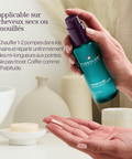 Chauffer 1 à 2 doses dans la paume de la main et répartir uniformément des mi-longueurs aux pointes.