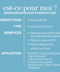 Un sérum léger qui redonne aux cheveux leur force naturelle, scelle les pointes fourchues et apporte brillance et douceur longue durée aux cheveux abîmés.