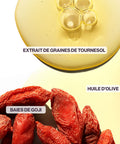 Comme une injection de vitamines pour vos cheveux, l'huile d'olive riche en antioxydants et contenant des acides gras contribue à une brillance et une douceur saines, tandis que les baies de goji protègent des radicaux libres et utilisent une forte concentration d'acides aminés et de protéines pour ajouter une brillance supplémentaire.